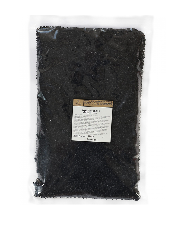 Умови зберігання: за температури +1+6 – 2 місяці; за температури –18 – 12 місяців. Ікра імітована «Для суші» – морський делікатес, новинка ринку, що заслуговує на особливу увагу справжніх гурманів. Цьому збалансованому продукту властивий смак ікри “Тобіко”. Ікра розсипчастої, сухої суміші, діаметр кожної ікринки не більше 0,5-0,8 мм. Справжньою родзинкою продукту є характерний хрускіт при вживанні.Завдяки унікальним властивостям, що імітують тобіко, ікра для суші є продуктом, який вдало доповнює страви японської кухні – суші та роли. Крім вишуканого смаку та приємних тактильних характеристик, ідентичних натуральній ікрі леткої риби, така ікра приваблює комплексом важливих для організму людини речовин – мінералів та вітамінів, заперечуючи тим самим думку про те, що корисне смачним не буває.